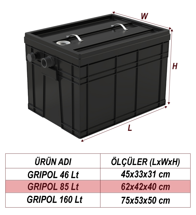 • 0,60 lt/sn debi kapasitesi ile orta ölçekli restoranlar, kafeler ve ticari mutfaklar için geliştirilmiş, kompakt ve yüksek verimli bir yağ ayırıcı sistemidir. 0,60 lt/sn debi kapasitesine sahip olan bu model, atık sularda bulunan yağ ve gresleri etkin şekilde ayrıştırarak gider hatlarının korunmasına yardımcı olur ve tıkanmaların önüne geçer.